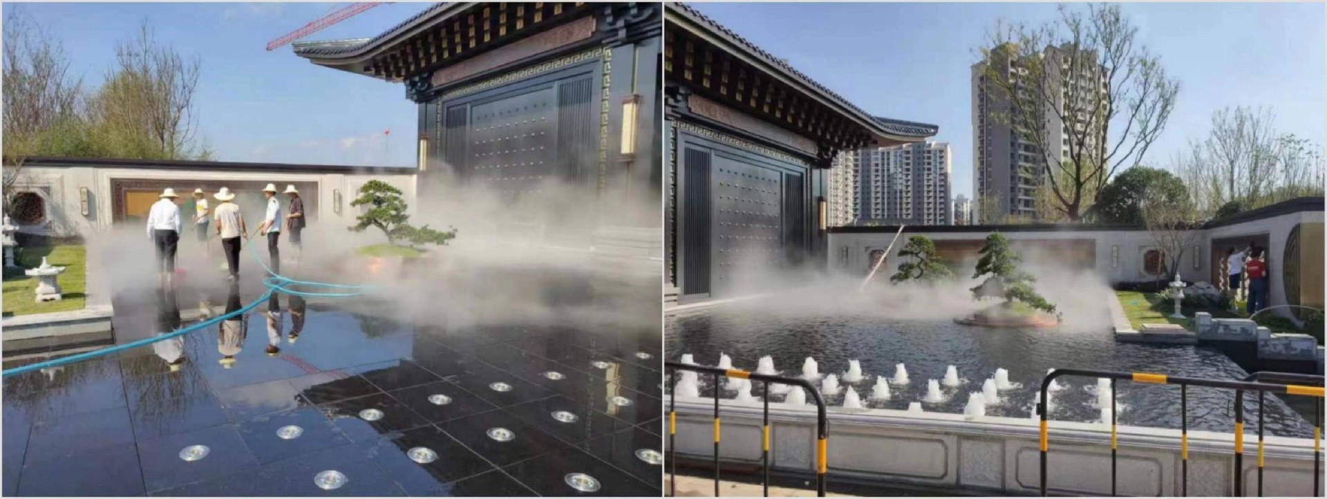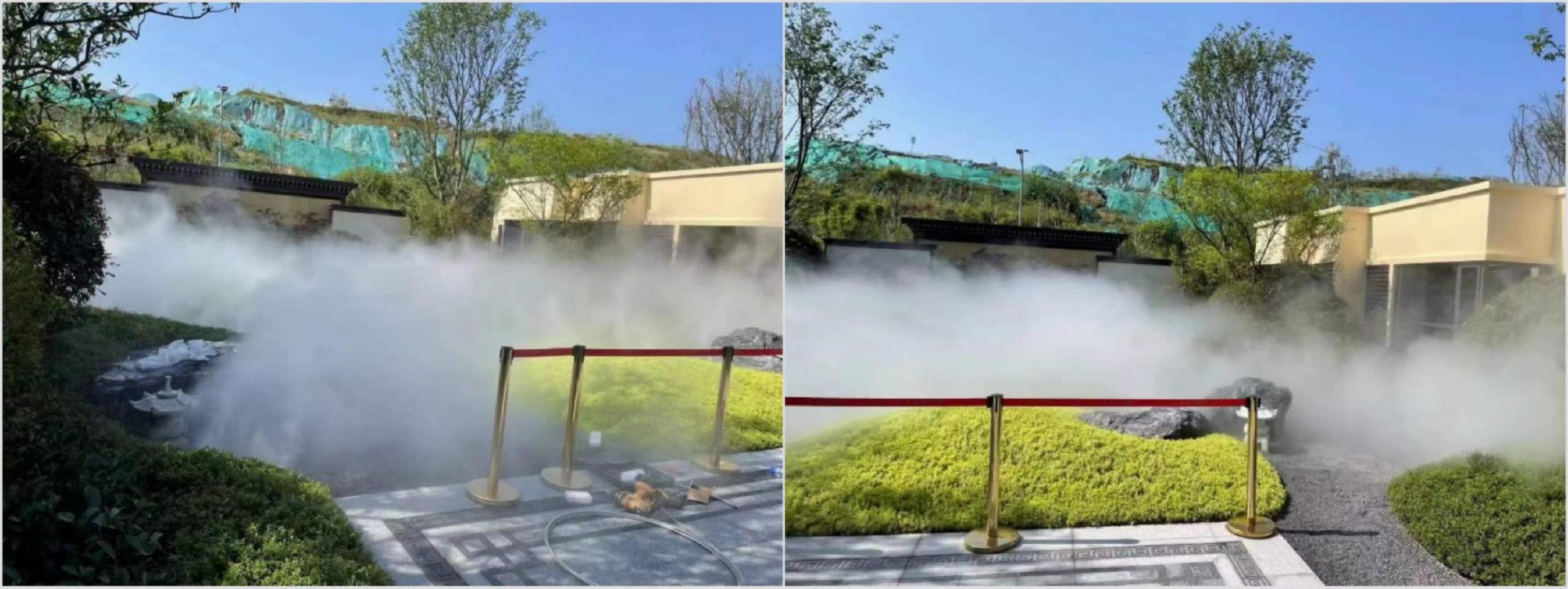 該項目承接于2021年9月2日,用時十二天完工。該項目占地面積600平方米,在地埋式伸縮噴頭的基礎上,增加了冷霧造景噴霧,使環(huán)境更加優(yōu)美。